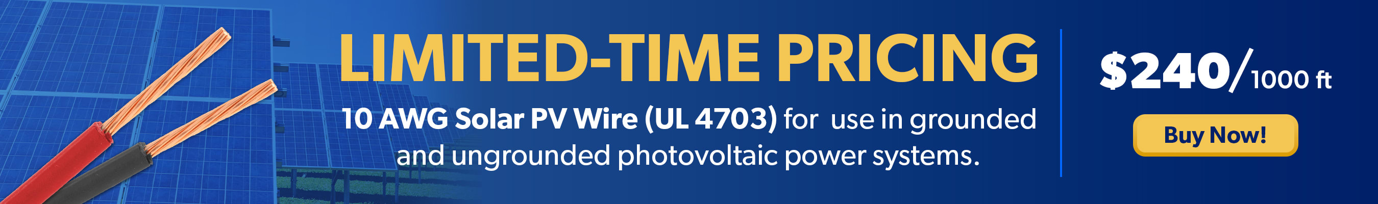 We invite you to seize this limited opportunity and leverage our surplus supply of 2Kv 10 AWG 7 stranded Copper photovoltaic wire. Together, let's drive success in the solar industry and fulfill the increasing demand for sustainable energy solutions. Click the banner below to learn more about this wire and place your order.