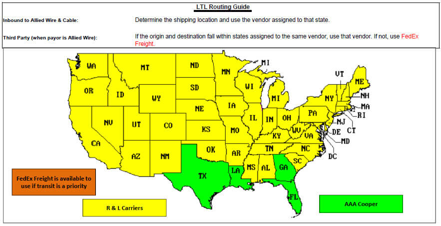 *If Shipments exceed 19,999 pounds, or if shipments occupy twenty (20) linear feet, or occupies 750 cubic feet in a trailer, call Truckload Routing as indicated above