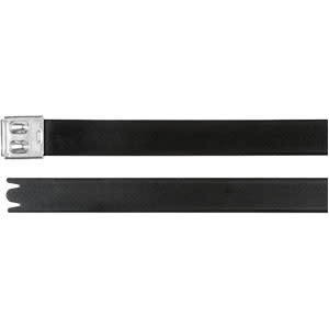 HellermannTyton's MBT Ties are fabricated from corrosion-resistant 316 stainless steel and have a protective polyester coating. Part number 111-00300 provides this functionality. Stainless tie design includes a non-releasable locking feature for secure applications. Polyester coating provides smooth edges to make it safer for installers™ hands and eliminates contact corrosion between dissimilar materials.