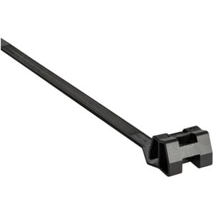 UV resistant materials contain an inhibitor that prolongs the life of the tie in outdoor environments. One-piece design reduces installation time. Outside serrations prevent cable damage.