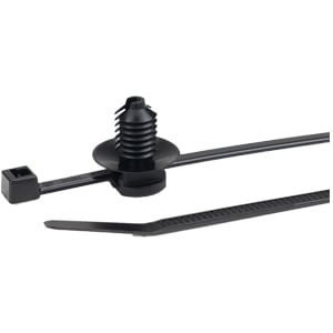 HellermannTyton's fir tree mounts provide a secure grip in a mounting hole. Part number 150-31090 provides this functionality. The mount can slide along the cable tie to adjust orientation as needed. Fir tree mounts are designed to provide a low insertion force and high extraction force. This mount is sold as an assembly with the cable tie.