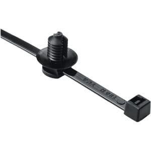 HellermannTyton's fir tree mounts provide a secure grip in a mounting hole. Part number 150-31091 provides this functionality. The mount can slide along the cable tie to adjust orientation as needed. Fir tree mounts are designed to provide a low insertion force and high extraction force. This mount is sold as an assembly with the cable tie.