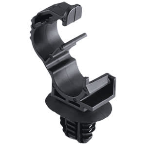 The Locking Clamp is ideal for fastening wire and cable bundles to panels. Part number 151-01306 provides this functionality. Its uniquely engineered fir tree holds tightly in pre-stamped hole sizes from 9x12mm to 9x14mm. The locking clamp mechanism dynamically fits various bundle sizes, while an integrated cable tie saddle allows installers to add additional cable runs. The clamp is manufactured of an impact-modified Polyamide 6.6 material for increased flexibility, heat resistance and UV stabilization to deliver years of dependable performance. It is easy to install and operate with a single hand and does not require tools, saving time and labor costs.