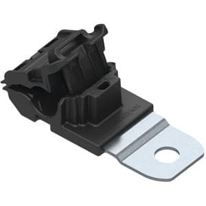 One-piece ratchet closure allows for easy installation during pre- or final assembly. Easy release feature simplifies quick adjustments and maintenance. Impact modified. heat and UV stabilized PA66 provides long-term durability. indoors and out. Zinc-plated steel mounting plate tolerates high torque and is treated to resist chemicals and salt spray. Straight. 180 mounting plate is ideal for applications requiring a flush mount set off from the mounting hole.