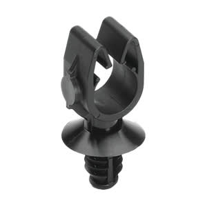Patented retention design features inverted retaining legs. narrow opening and circular retainer to prevent inadvertent disengagement. Controlled flex and angled entry promote easy installation. Fir tree demonstrates easy insertion with high extraction resistance.