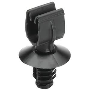 Patented retention design features inverted retaining legs. narrow opening and circular retainer to prevent inadvertent disengagement. Controlled flex and angled entry promote easy installation. Fir tree demonstrates easy insertion with high extraction resistance.