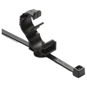 The 360 degree enclosure ensures the entire bundle is secure when being routed by this clip. Locking tab on this clip is small enough that it will not interfere with any other portion of the wire routing. but is significant enough to allow for manual disengagement if service is needed. The cable tie portion of this two-piece design allows for two wire bundles to be routed with the same piece.