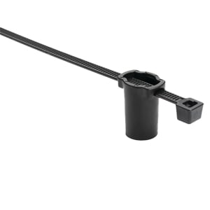 Oval Shaped Stud Mount's special design allows for a 0.2" (5.5mm) lateral adjustment, allowing for any misalignment of the stud or incorrect position of the tie on the cables. Part number 156-01295 provides this functionality. The"soft push" mount allows it to be installed onto a weld stud without the use of any tools.