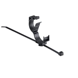 The 360 degree locking enclosure and cable tie dynamically fit a range of bundle sizes. Clamp can be opened for bundle maintenance. Low-profile release tab won't interfere with bundle or nearby routing. The two bundles are allowed to rotate up to 90 degrees from one another.