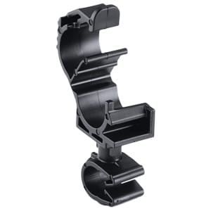The MOC to LOC is a rotatable dual routing clip and clamp combination that keeps two routings secured and separated. Part number 156-01835 provides this functionality. A swivel coupler allows them to rotate independently of each other.