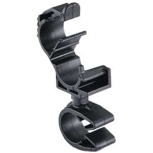 The MOC to LOC is a rotatable dual routing clip and clamp combination that keeps two routings secured and separated. Part number 156-01837 provides this functionality. A swivel coupler allows them to rotate independently of each other.