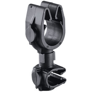 Patented retention design features inverted retaining legs. narrow opening and circular retainer to prevent inadvertent disengagement. Controlled flex and angled entry promote easy installation. Independent rotation allows for adjustable routing orientation.