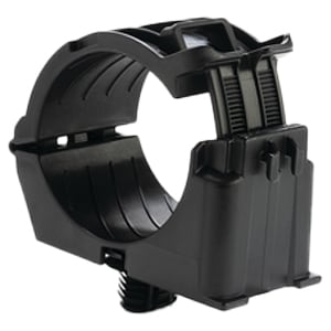The Fir Tree Mount Ratchet Clamp offers versatility when managing wires, cables and hoses. Part number 156-02652 provides this functionality. Integrated fir tree means no additional hardware is needed for securing to a hole. The robust design and durable materials make it ideal for heavy duty applications, both indoors and out. The adjustable clamp can be closed by hand to the desired diameter. The release feature allows easy and nondestructive removal of cables simply by using a flat-head screwdriver. In this way, the clamp can be reused or serviced without removing it from the mounting surface.