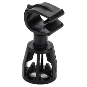 MOC stud mount secures bundles above a bolt or stud. Patented retention design features inverted retaining legs. narrow opening and circular retainer to prevent inadvertent disengagement. Controlled flex and angled entry promote easy installation. Independent rotation allows for adjustable routing orientation. High-performance stud mount design allows for easy installation and delivers outstanding stud retention to keep bundles secure.