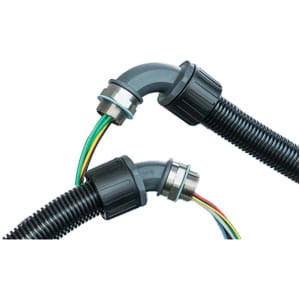 HelaGuard Non-Metallic 90-Degree Elbow fitting features a snap-on design that provides a quick, secure connection. Part number 166-90099 provides this functionality. Constructed of a very durable nylon material with a high resistance to salts, oils, weak acids and solvents. Designed for easy removal with a small screwdriver. IP66 ingress protection rated fittings.