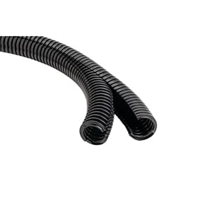 A low-fire-hazard, corrugated two-piece conduit, each of which is slit open to ease installation and maintenance of wire and cable bundles. Part number 166-90977 provides this functionality. The interlocking construction is excellent for retrofitting projects. PA6FR material is highly flame retardant, resistant to solvents and oils and offers excellent abrasion resistance. Combine with HelaGuard Non-Metallic Fittings for IP66 rating or greater protection against water, wind and dirt.