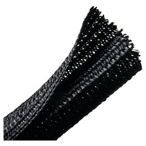 Used when flame retardancy is a primary requirement, this protection option incorporates a lateral split which allows the tube to open up to accommodate a variety of bundling requirements. Part number 170-03143 provides this functionality. The semi-rigid braid configuration simply closes around the entire installation without the need for any additional fasteners. Split wrap flame retardant braided sleeving is self-extinguishing and complies with UL VW-1 standards where cables exit a wall and need to be managed for an uncluttered, clean appearance.