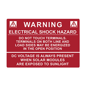 HellermannTyton Solar Label, WARNING ELECTRICAL SHOCK HAZARD?ǪDC VOLTAGE, 3.75" x 2.5", VL, Red, 50/roll engineered for demanding identification needs in industrial environments. HellermannTyton pre-printed Solar Installation Labels are designed to meet the requirements of the National Electrical Code and the International Fire Code as well as being acceptable to the Authority Having Jurisdiction (AHJ). Labels are made with durable UV-stable materials and adhesives that are designed to stick to both baked enamel and powder coat surfaces. Where applicable, labels are made using reflective materials for first responder safety. Some pre-printed labels are printable using a thermal transfer printer when variable voltage or series data must be printed and displayed. Pre-Printed Vinyl Solar Labels are made with UV-stable inks and materials for durability and weather resistance. Supplied with an aggressive adhesive to ensure long life. Meets NEC?« & IFC standards for printed text, character height, color and outdoor UV stability to pass inspections. Pre-printed labels offer significant time and cost savings over high-priced plastic engraved phenolic placards and the lead time of purchased markers.