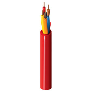 This cable features 6 conductors of 18 AWG, 1-strand bare copper conductors. Rated for 300V, the cable uses Flamarrest insulation and a Flamarrest jacket. The cable operates up to 75C and is approved to NEC Type FPLP standards. Approximate weight is 46 lbs/MFT with Black/Red/Brown/Blue/Orange/Yellow color coding.