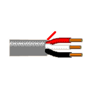 This cable features 3 conductors of 22 AWG, 7-strand bare copper conductors. Rated for 300V, the cable uses Flamarrest insulation and a Flamarrest jacket. The cable operates up to 75C and is approved to NEC Type CMP standards with Black/Red/White color coding.