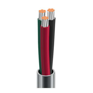 This cable features 3 conductors of 22 AWG, 7-strand tinned copper conductors. Rated for 150V, the cable uses Polyvinylchloride (PVC) insulation and a Polyvinylchloride (PVC) jacket. The cable operates up to 80C and is approved to NEC Type CMG and CSA Type FT4 standards. Approximate weight is 18 lbs/MFT with Black/Red/Green color coding.