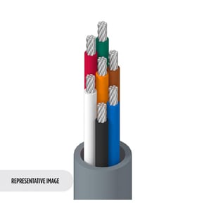 This cable features 7 conductors of 22 AWG, 7-strand tinned copper conductors. Rated for 150 (UL 2576) & 300 (CMG)V, the cable uses Polyvinylchloride (PVC) insulation and a Polyvinylchloride (PVC) jacket. The cable operates from -20C to 80C and is approved to NEC Type CMG standards. Approximate weight is 34 lbs/MFT with Chart 1 color coding.