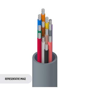 This cable features 12 conductors of 20 AWG, 7-strand tinned copper conductors. Rated for 300V, the cable uses Polyvinylchloride (PVC) insulation and a Polyvinylchloride (PVC) jacket. The cable operates up to 80C and is approved to NEC Type CMG standards. Approximate weight is 88 lbs/MFT with Chart 1 color coding.