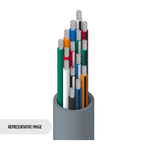 This cable features 15 conductors of 20 AWG, 7-strand tinned copper conductors. Rated for 300V, the cable uses Polyvinylchloride (PVC) insulation and a Polyvinylchloride (PVC) jacket. The cable operates up to 80C and is approved to NEC Type CMG standards. Approximate weight is 118 lbs/MFT with Chart 2R color coding.