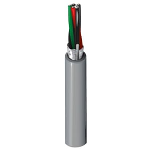 This cable features 3 pairs of 24 AWG, 7-strand tinned copper conductors with an overall Beldfoil shield. Rated for 300V, the cable uses Polyvinylchloride (PVC) insulation and a Polyvinylchloride (PVC) jacket. The cable operates up to 80C and is approved to NEC Type CMG and CSA Type AWM I A standards. Approximate weight is 30 lbs/MFT with Chart 3 color coding.