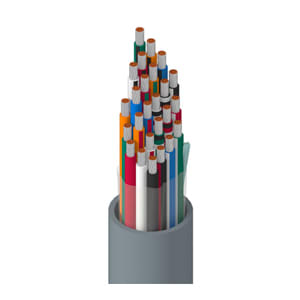 This cable features 25 conductors of 16 AWG, 19-strand tinned copper conductors. Rated for 600V, the cable uses Polyvinylchloride (PVC) insulation and a Polyvinylchloride (PVC) jacket. The cable operates up to 80C. Approximate weight is 480 lbs/MFT with Chart 2R color coding.