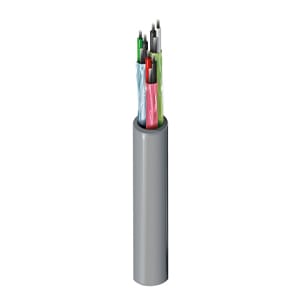 This cable features 3 pairs of 18 AWG, 19-strand tinned copper conductors with individually foil shielded pairs and an overall Beldfoil shield. Rated for 30V, the cable uses Polypropylene (PP) insulation and a Polyvinylchloride (PVC) jacket. The cable operates up to 80C and is approved to NEC Type CM standards. Approximate weight is 107 lbs/MFT with Chart 3 color coding.