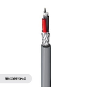 This cable features 3 conductors of 24 AWG, 7-strand tinned copper conductors with an overall Beldfoil/ Tinned Copper Braid shield. Rated for 30V, the cable uses Datalene insulation and a Polyvinylchloride (PVC) jacket. The cable operates up to 80C and is approved to NEC Type CM standards. Approximate weight is 24 lbs/MFT with Chart 1 color coding.