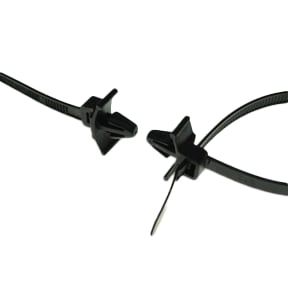 Opt for our robust Push Mount Wing Cable Ties, fabricated from Nylon 66 in UV Black or Natural. At 6.22" in length and 0.14" in width, with a thickness of 0.04", it achieves a tensile strength of 40lbs and a maximum bundle diameter of 1.43". Effective from 32 to 185F.