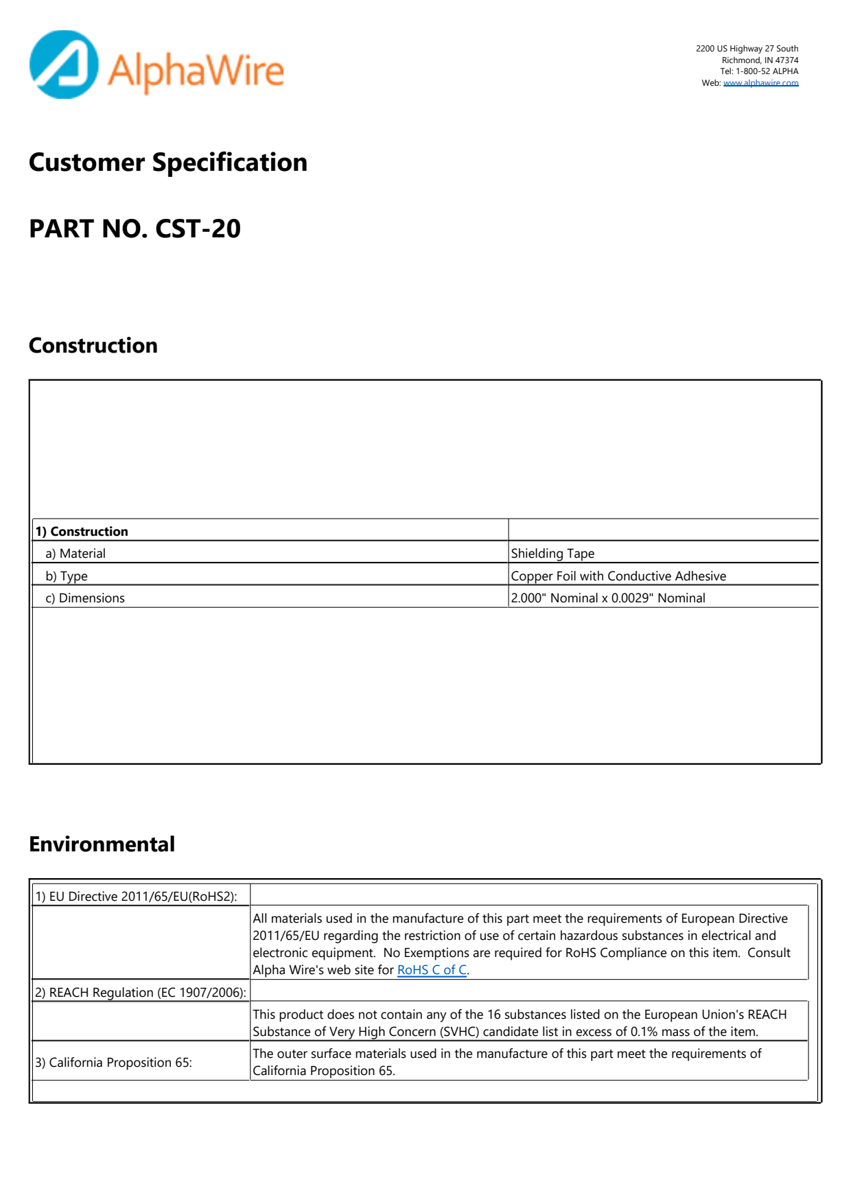 Alpha CST20 NC087 — Shielding Tape