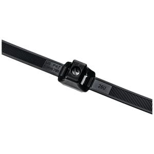 Dual-Clamp Ties are designed to provide parallel separation between hoses, wires, cables, and tubing to protect them from abrasion. Part number DCT110HIRK2 provides this functionality. These ties have an optional mounting hole for securing bundles along the chassis of trucks, trailers, and heavy duty equipment. The unique one-piece design features the dual head centered on the strap.