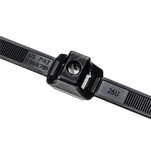 Dual-Clamp Ties are designed to provide parallel separation between hoses, wires, cables, and tubing to protect them from abrasion. Part number DCT90HIRC2 provides this functionality. These ties have an optional mounting hole for securing bundles along the chassis of trucks, trailers, and heavy-duty equipment. The unique one-piece design features the dual head centered on the strap.
