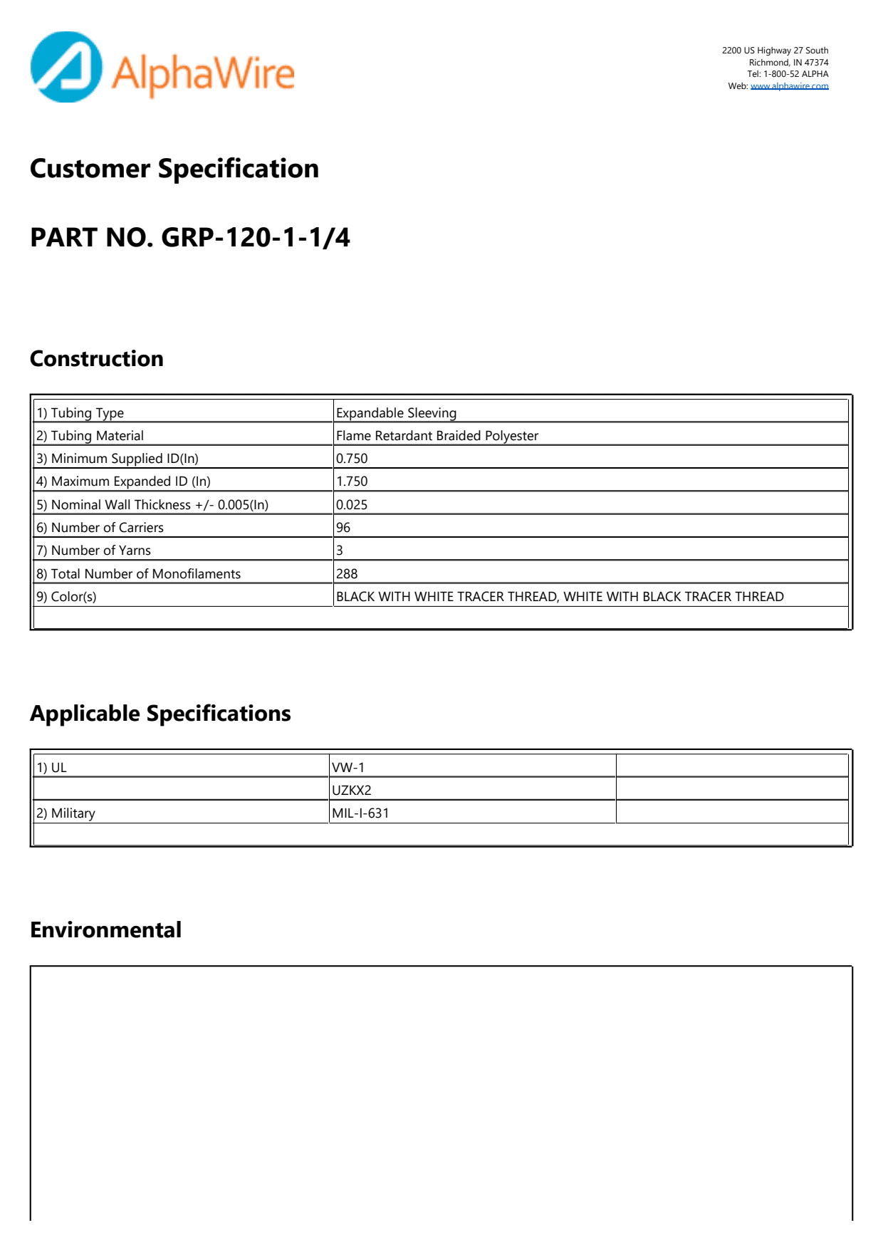 UL UZKX2; MIL-I-631; UL VW-1