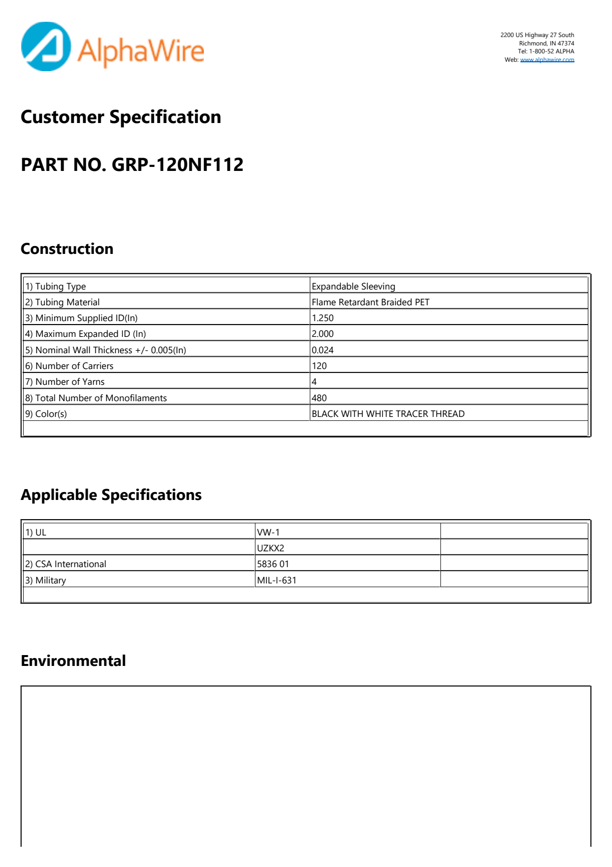 UL UZKX2; CSA 5836 01; MIL-I-631; UL VW-1