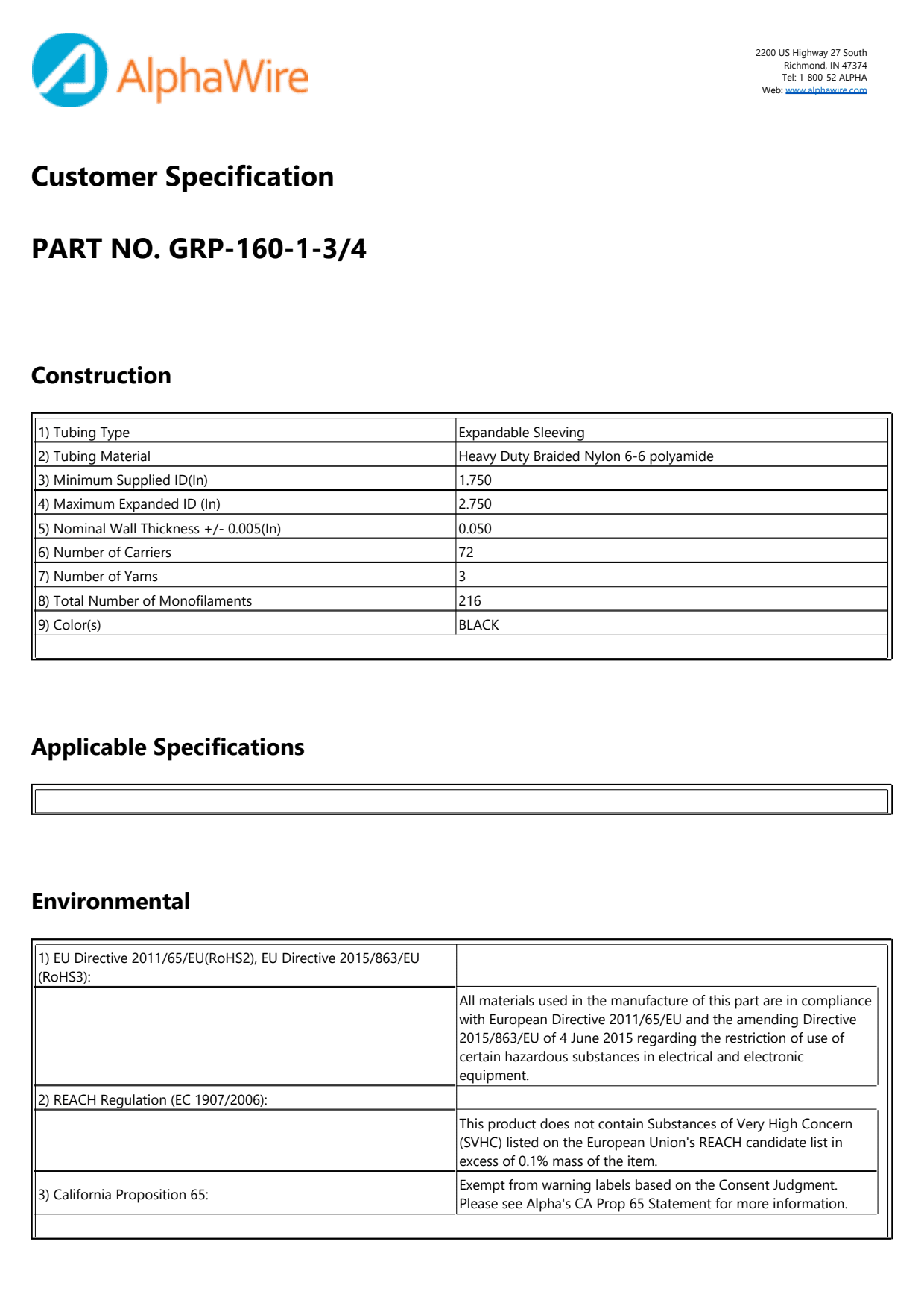 Alpha G16013/4 BK005 is a high-performance heavy-duty braided nylon sleeving product designed to withstand extreme temperatures ranging from -45°C to 150°C. With a nominal inner diameter of 2.75 inches and a versatile size range starting at 1.75 inches, this durable material is perfect for a variety of applications, including industrial, automotive, and outdoor uses, where reliability and resilience are paramount.