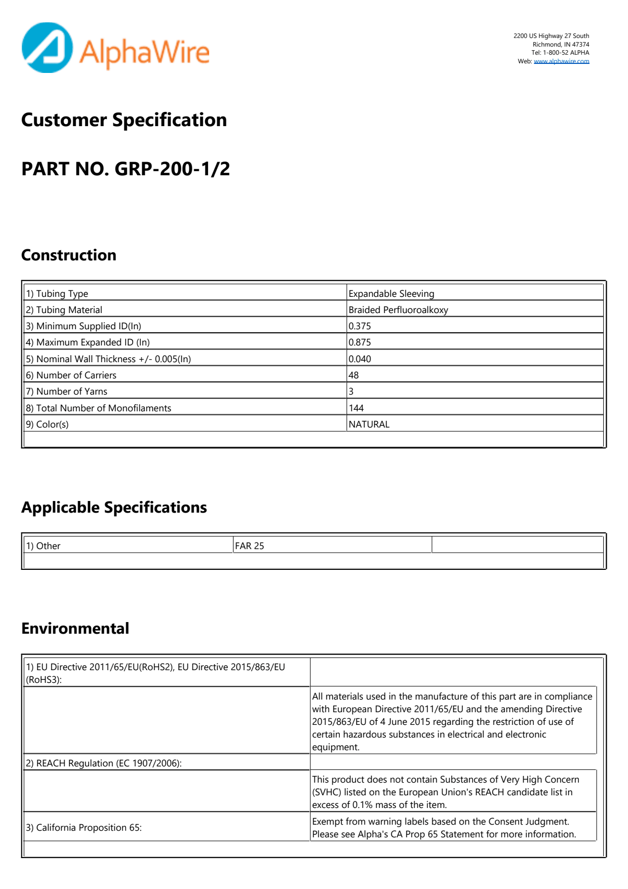 FAR 25; RoHS; CA Prop 65; REACH Regulation _EC 1907_2006_