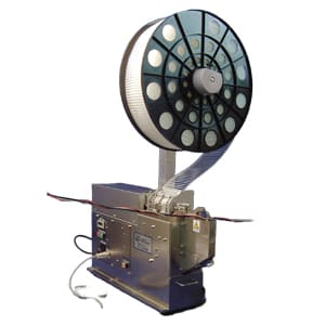 HellermannTyton's Quick Tool is an automatic bench mount system suited for high volume cable tie applications. Part number QTTIE9 provides this functionality. This air powered tool accommodates a reel of 5000 ties and, like HellermannTyton's other automamted systems, can be integrated into further automation as well as fully incorporated into conveyor or assembly line applications. Custom colors for Quick Tool ties are also available.
