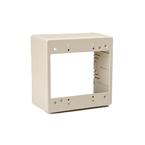 HellermannTyton Dual Gang Junction Box, 1-1/2" Deep, 2-Piece, PVC, Ivory, 1/bg engineered for demanding identification needs in industrial environments. Offered in dual or single gang format, HellermannTyton's Low Voltage Junction Boxes are versatile enough for any network cabling application. Available in varying depths, these boxes are all equipped with concentric knockouts on all four sides for every TSR size of raceway to eliminate routing and installation inconvenience. all junction boxes come with adhesive strips on the back of the base and #6 screws to secure the box to the base. Rubber based foam tape adhesive with high ultimate bond strength conforms to any surface.